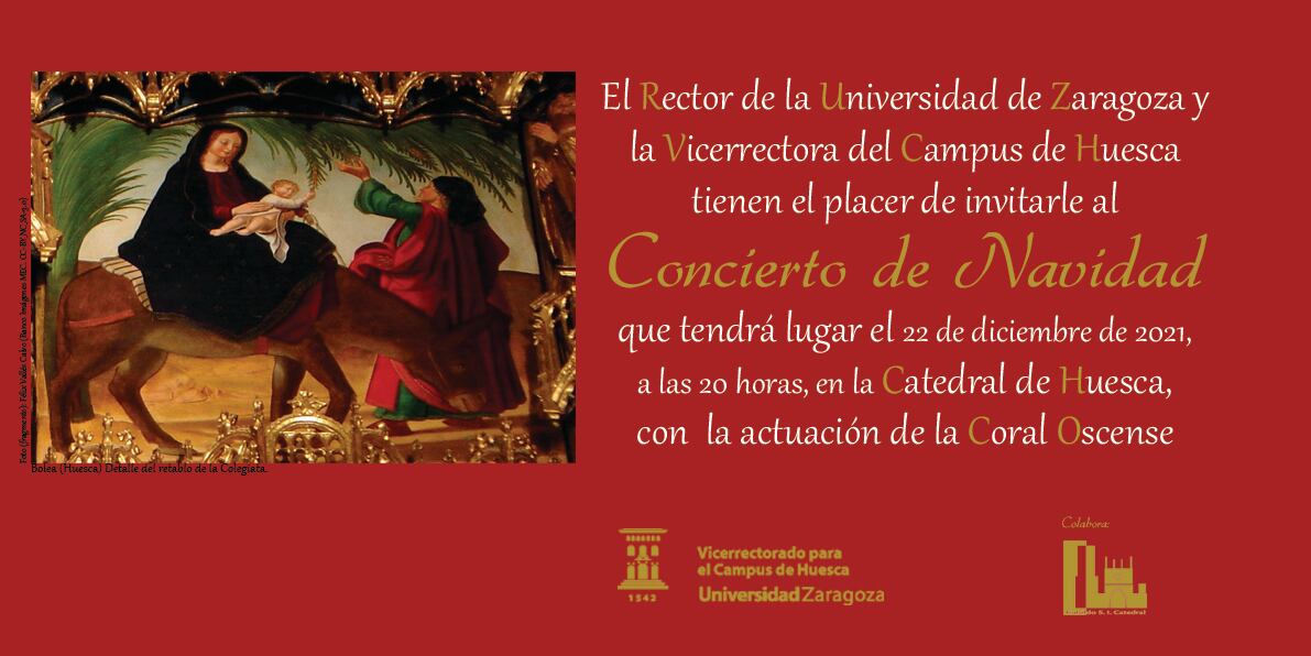 El Concierto de Navidad del Campus de Huesca inició su andadura el 21 de diciembre de 1994. La ‘Sinfonía altoaragonesa’ y el ‘Oratorio a la Navidad’, del organista de la Catedral de Huesca Juan José de Mur, obras que se estrenaban en esa ocasión, fueron los temas elegidos para esa primera cita. La Coral Oscense ya participó en aquella ocasión, dirigida entonces por Conrado Betrán, acompañada por la Orquesta de Cámara de Cataluña Orfeu. Obras de Vivaldi, Bach, Albinoni, o Haendel, junta a las de decenas de compositores españoles y extranjeros han ido llenando posteriormente, cada año, los programas de esta iniciativa universitaria.