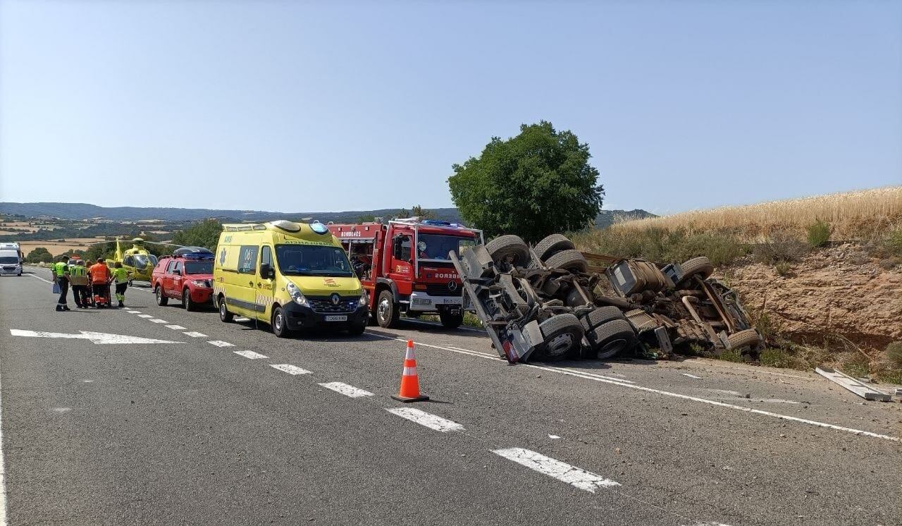 El conductor de un camión ha resultado herido grave en el accidente que se ha producido este lunes en la N-230, en el punto kilométrico 75,800 en el termino municipal de Tolva, perteneciente a la Comarca de la Ribargoza.