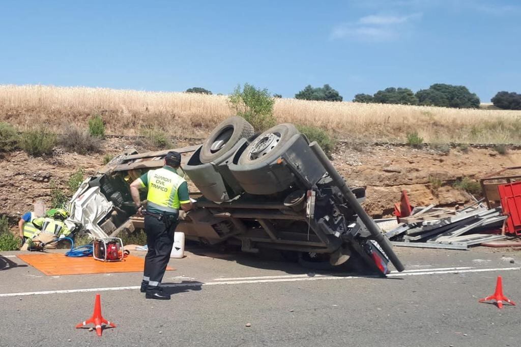 El accidente ha tenido lugar este lunes sobre las 15:30 horas cuando el camión se ha salido de la vía y ha volcado posteriormente por causas que se desconocen. Ha sido el único vehículo implicado en el siniestro.