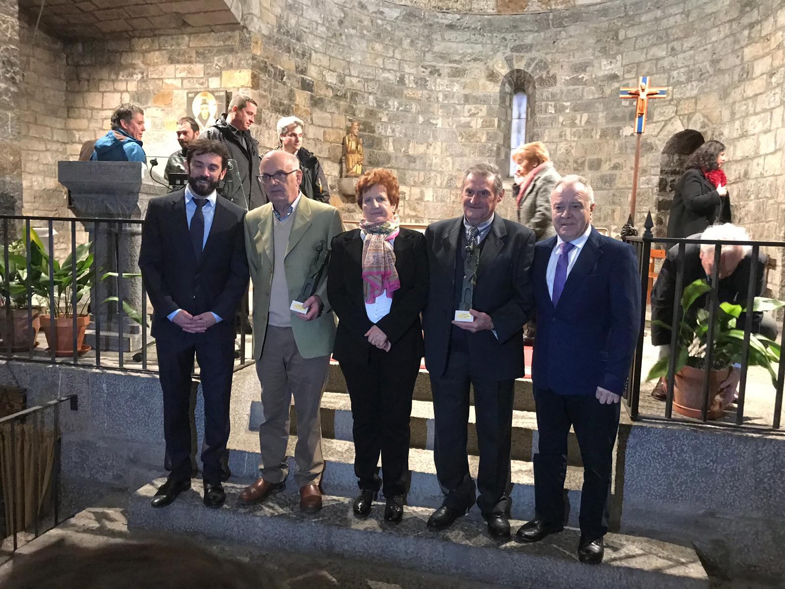 El párroco José María Cabrero y Joaquín Cazcarra y Cristina Zueras, propietarios del histórico Refugio de Viadós, recogían este sábado los Premios Cruz de Sobrarbe de manos del alcalde de Aínsa, Enrique Pueyo, y el presidente de la Diputación Provincial de Huesca, Miguel Gracia en reconocimiento por su labor en el territorio de Sobrarbe. La Iglesia de Santa María de Aínsa acogía este acto entrañable, que reconoce la labor diaria de personas que hacen de Sobrarbe un lugar mejor.