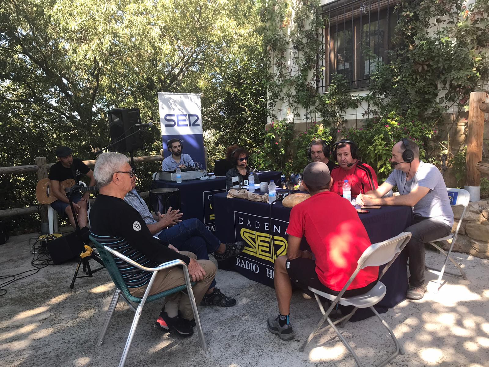 El programa se iniciaba con el famoso anuncio deVodafone grabado por dos famosos alpinistas en una de las paredes de Riglos y una fotografía radiofónica de la jornada que se estaba viviendo con, en torno a 250 senderistas, recorriendo las rutas marcadas para la jornada.