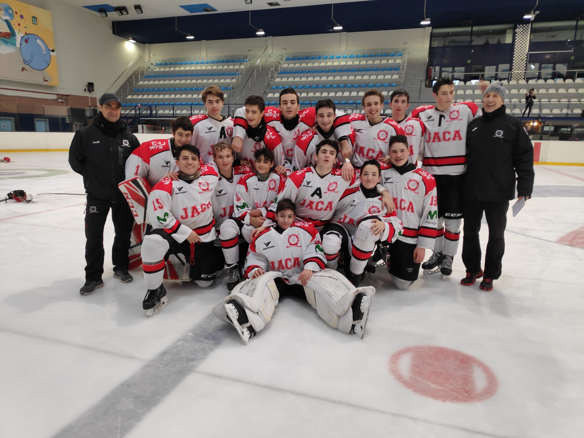En Sub 14, el Club Hielo Jaca perdió con el Valdemoro (2-3) en un partido muy equilibrado que se decidió en el sexto lanzamiento de penalti. Jorge Mazón y Asier Barcelona, de penalti, adelantaron al equipo en el primer periodo, pero un doblete del madrileño Héctor Acuña equilibró el marcador en el último tiempo. Tras una prórroga sin goles, empezó la tanda de penaltis con acierto por parte de Jorge Mazón y el visitante Jaime Nicolás Serrano. Ambos equipos fallaron sus cuatro siguientes lanzamientos. En el sexto, Jaime Nicolás Serrano volvió a marcar y dio el triunfo a su equipo, que se pone líder en solitario por delante de los jaqueses