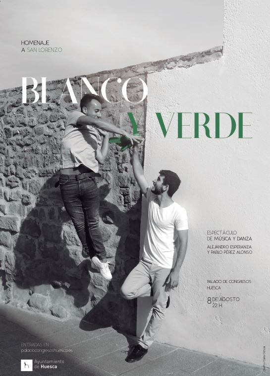 "Blanco y Verde" es una actuación que el pianista Alejandro Esperanza y el bailarín Pablo Pérez Alonso llevan al auditorio Carlos Saura del Palacio de Congresos de Huesca este sábado 7 de agosto, a las 20:30. Las entradas se encuentran disponibles en taquillas y en la web del propio Palacio de Congresos.