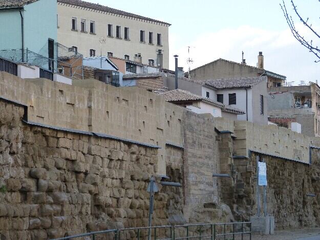 Los comercios en los que todavía se conserva la muralla son Multioptics Guara, Vainica Triple y Sipecusa. Los locales de hostelería son La Posada de la Luna, el Hotel Sancho Abarca, y los bares Brasil, Candanchú, La Hiedra 2, Duquesa, Garabato y Bendita Ruina.