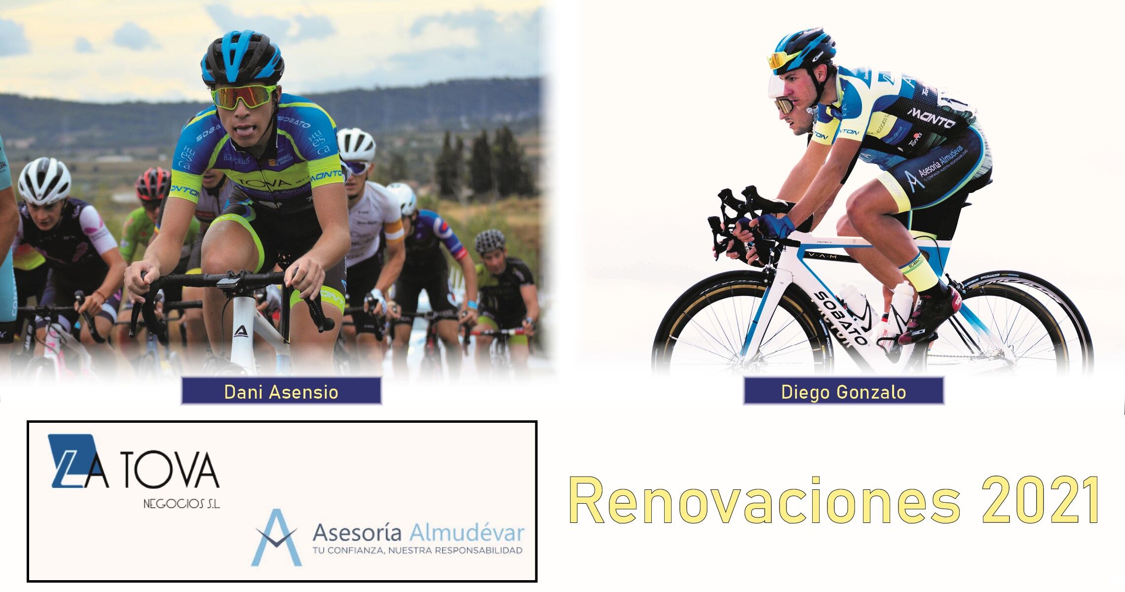 Después de anunciar otras 12 renovaciones y cuatro fichajes que suben desde la categoría junior, se ha anunciado la renovación de dos corredores sub23 que vivirán su segundo año en la categoría como son Dani Asensio y Diego Gonzalo.