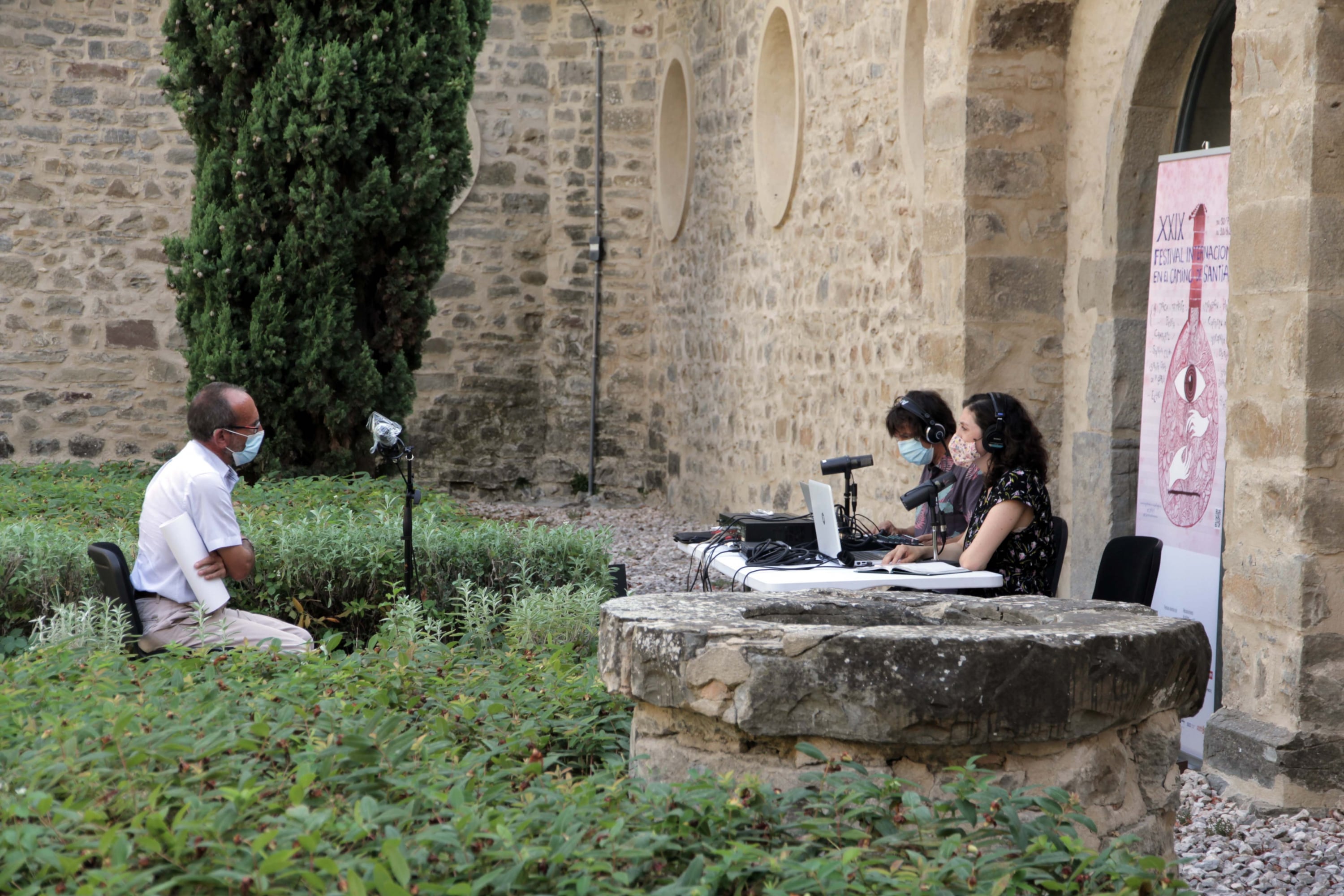 Otro de los proyectos que tiene en marcha el Festival es la emisión de una serie de podcast radiofónicos para promocionar el Camino de Santiago. La naturaleza, las localidades por las que pasa, las experiencias y sonidos que se encuentra el peregrino. Con estos ingredientes se grababa este viernes el primer programa de la productora Coctelera Music, dirigido por Nuria Net y Alex García Amat, y que contaba con la participación de Francisco Mateo, diputado provincial, Joaquín Giménez, vicepresidente de Comarca de la Jacetania, Javier Acín, el concejal de Cultura de Jaca, Luis Calvo, programador del Festival Camino De Santiago y Javier Gazapo, presidente de la Asociación de Amigos del Camino de Santiago de Jaca.