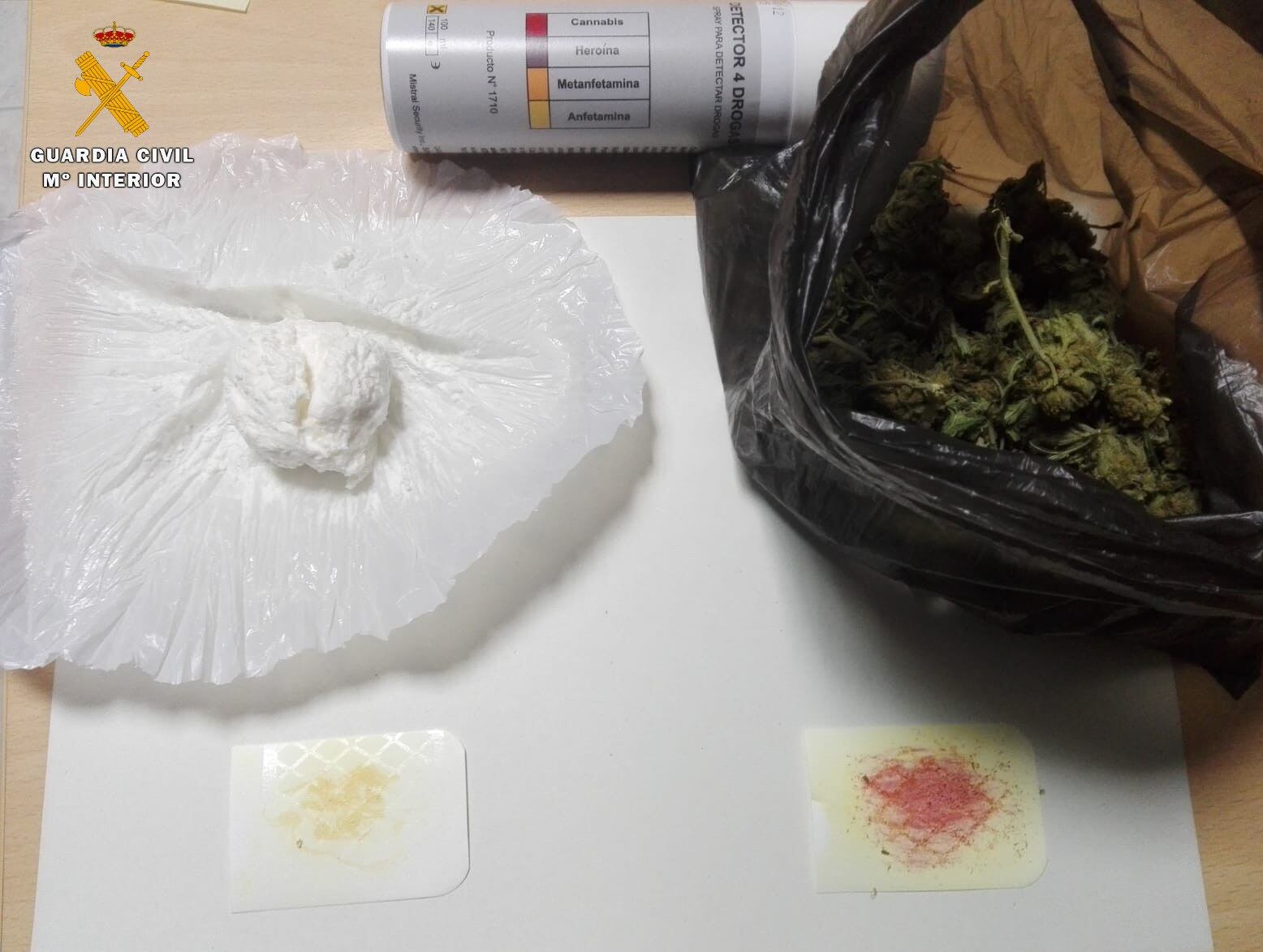 En el interior del reposabrazos encontraron dos bolsas de plástico. Una de ellas contenía una sustancia blanquecina, que parecía speed, y la otra marihuana seca lista para su consumo.