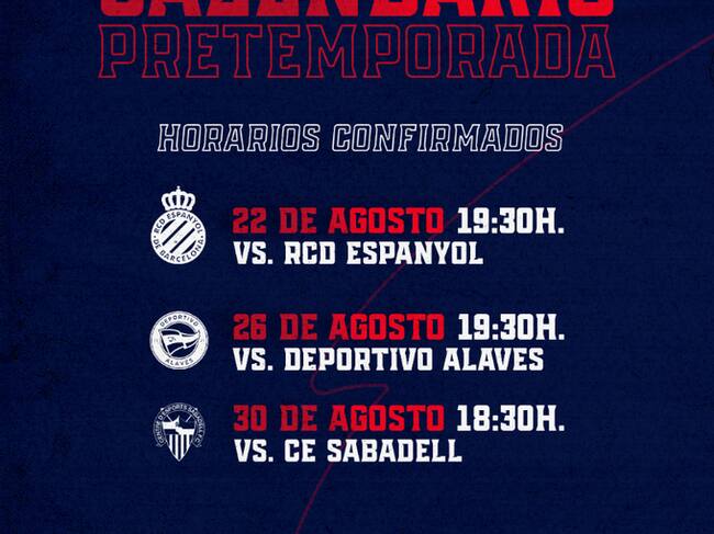 El día 26 de agosto los azulgranas se medirán al Deportivo Alavés, a partir de las 19:30 horas, en la Ciudad Deportiva de Ibaia.