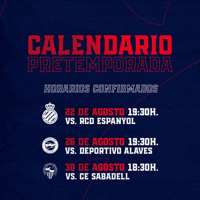El día 26 de agosto los azulgranas se medirán al Deportivo Alavés, a partir de las 19:30 horas, en la Ciudad Deportiva de Ibaia.