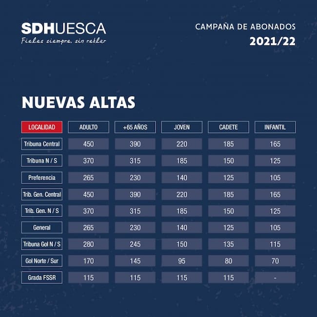 Bajo el lema “La vida es fútbol. El fútbol es vida”, la Sociedad Deportiva Huesca ha presentado la campaña de abonados de la temporada 2021/2022. En su regreso a Segunda División, el club tiene la esperanza de completar las 9.100 localidades que estarán disponibles entre renovaciones y nuevas altas desde hoy hasta el 8 de agosto, manteniendo varias condiciones y promociones a la vez que los precios se han visto aumentados en un 10%.