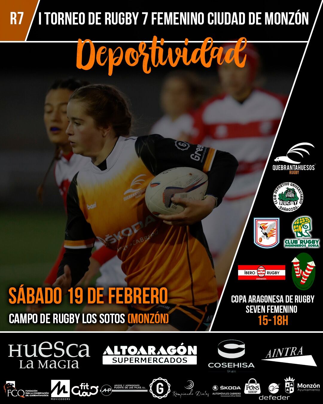 Este sábado tendrá lugar el I Torneo de Rugby Ciudad de Monzón en el campo de Los Sotos a partir de las 15:00h. Un torneo englobado dentro del circuito de la “Copa Aragonesa de Rugby Seven Femenino", que traerá a la localidad montisonense a más de 70 jugadoras de seis equipos diferentes venidos de toda la geografía aragonesa.