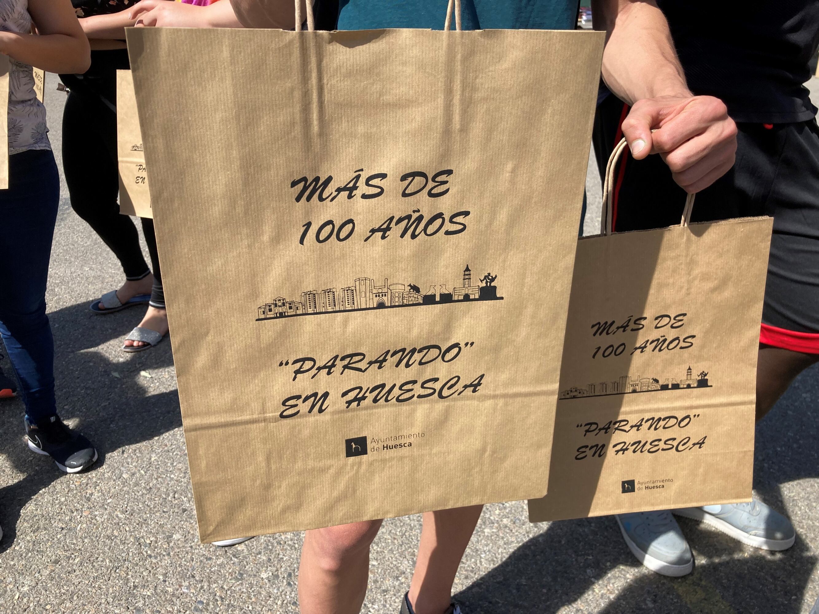 "Más de 100 años parando" es el nombre de la nueva campaña del Ayuntamiento de Huesca con la junta del mercado de venta ambulante a través de la cual se van a repartir bolsas de papel para todos los puestos. Los alumnos de los talleres de empleo municipales de serigrafía han elaborado cerca de 6.500 bolsas con el lema de la campaña y el "skyline" de Huesca que se repartirán entre los comerciantes. En concreto, cada puesto del Mercado recibirá un centenar de bolsas de dos tamaños diferentes.