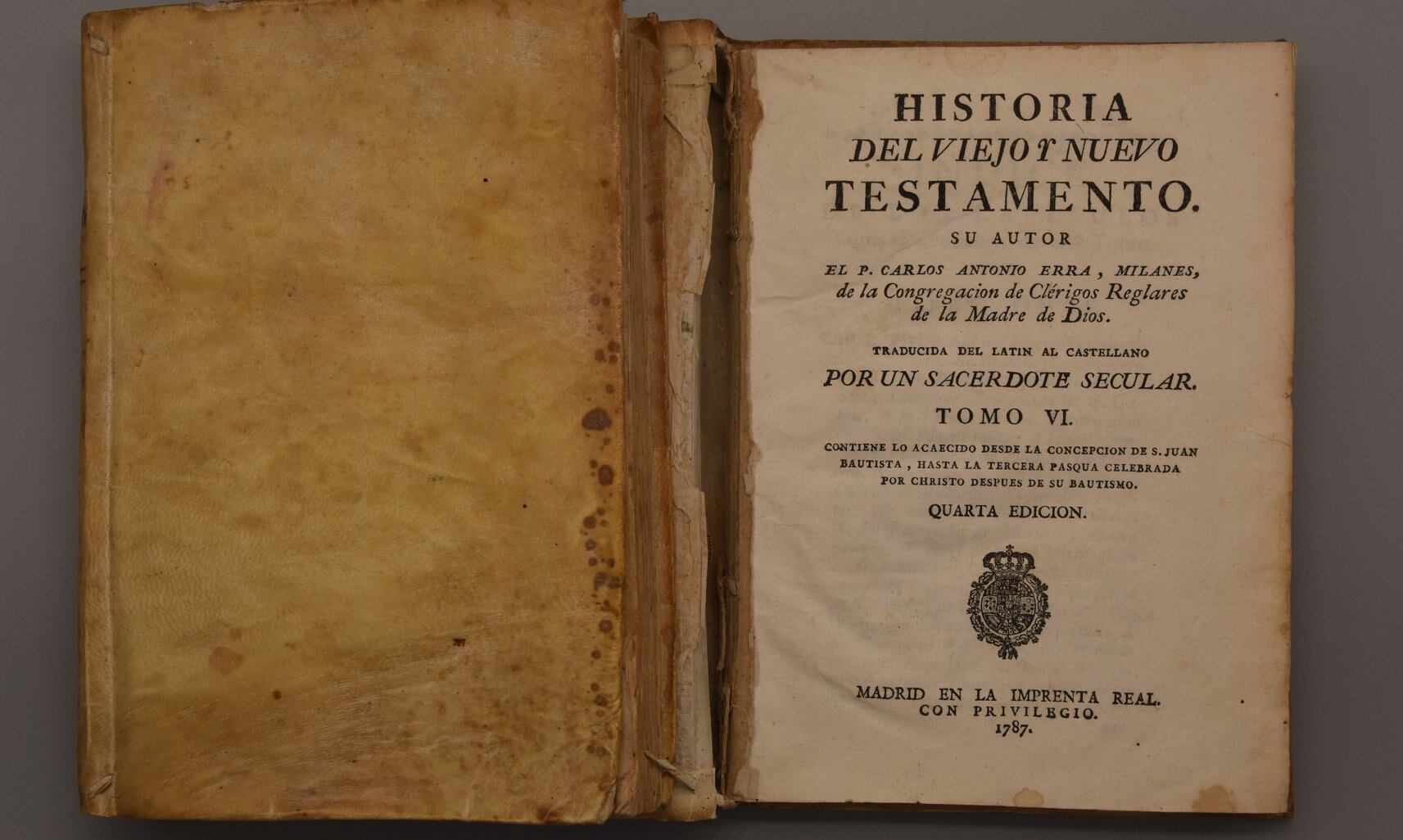 El Museo Diocesano de Huesca ha formalizado la recepción de dos volúmenes fechados en 1787 donados por un particular. Se trata de dos tomos de la "Historia del Viejo y Nuevo Testamento" escritos por el Padre Carlos Antonio Erra e impresos en la Imprenta Real de Madrid.