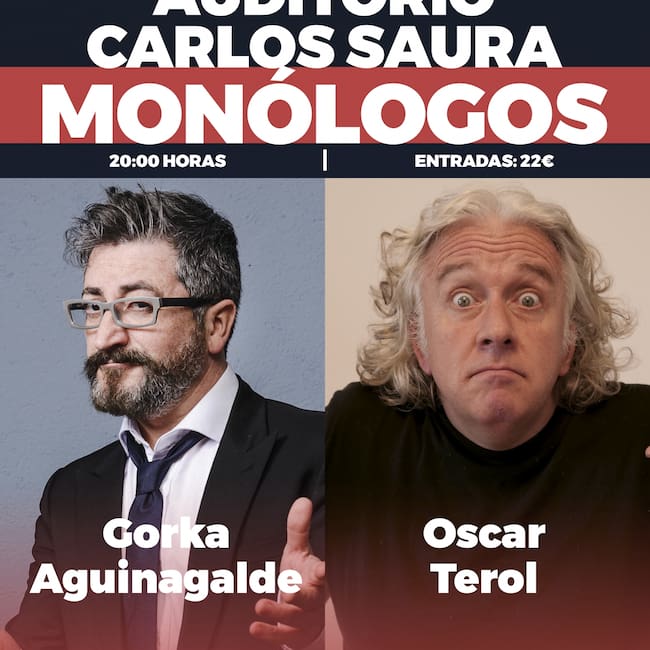 Óscar Terol y Gorka Aguinagalde visitarán el lunes 1 de mayo la ciudad de Huesca para ofrecer su espectáculo ‘Monólogos’, concretamente en el Auditorio Carlos Saura del Palacio de Congresos de Huesca a partir de las 20 horas. Como el propio nombre de la obra indica, se trata de dos monólogos distintos elaborados y expuestos por dos de los humoristas más reconocidos del territorio nacional, con los que pretenden “hacer pasar un rato de risas” al espectador.
