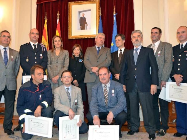 Eran condecorados: Rafael López Guarga, ingeniero autor del proyecto; Oscar Aguarta, jefe de bomberos del Alto Gállego; Jean Louis Frot, miembro del servicio de protección civil de la Prefectura de Pirineos Atlánticos; Antoine Ruiz, Jefe de gestión de bomberos de Pirineos Atlánticos; Michel Yebenes, Jefe de Escuadra del centro de cooperación policial y aduanera de Canfranc; Emilio Leo Ferrando, Jefe de la Unidad de Protección Civil de la Subdelegación del Gobierno en Huesca; y José Martín, técnico de la Unidad de Protección Civil de la Subdelegación del Gobierno en Huesca.