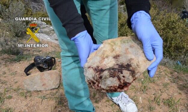 En el lugar de los hechos se localizó la tapa de objetivo y un protector solar de una cámara de fotos. También se encontraron tres piedras de gran tamaño con restos de sangre.