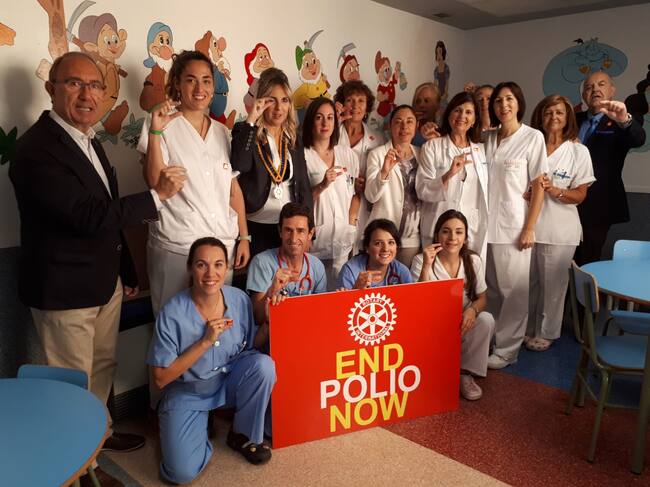 Con motivo del Día Internacional de la Polio, el día 24 de Octubre, el Rotary club de Huesca realizaba varios actos de concienciación. El primero tenía lugar en el área de pediatría del Hospital San Jorge de Huesca, donde todo el personal de la planta los recibía y ponía su pequeño grano de arena para la divulgación del proyecto de Rotary International "End Polio Now".