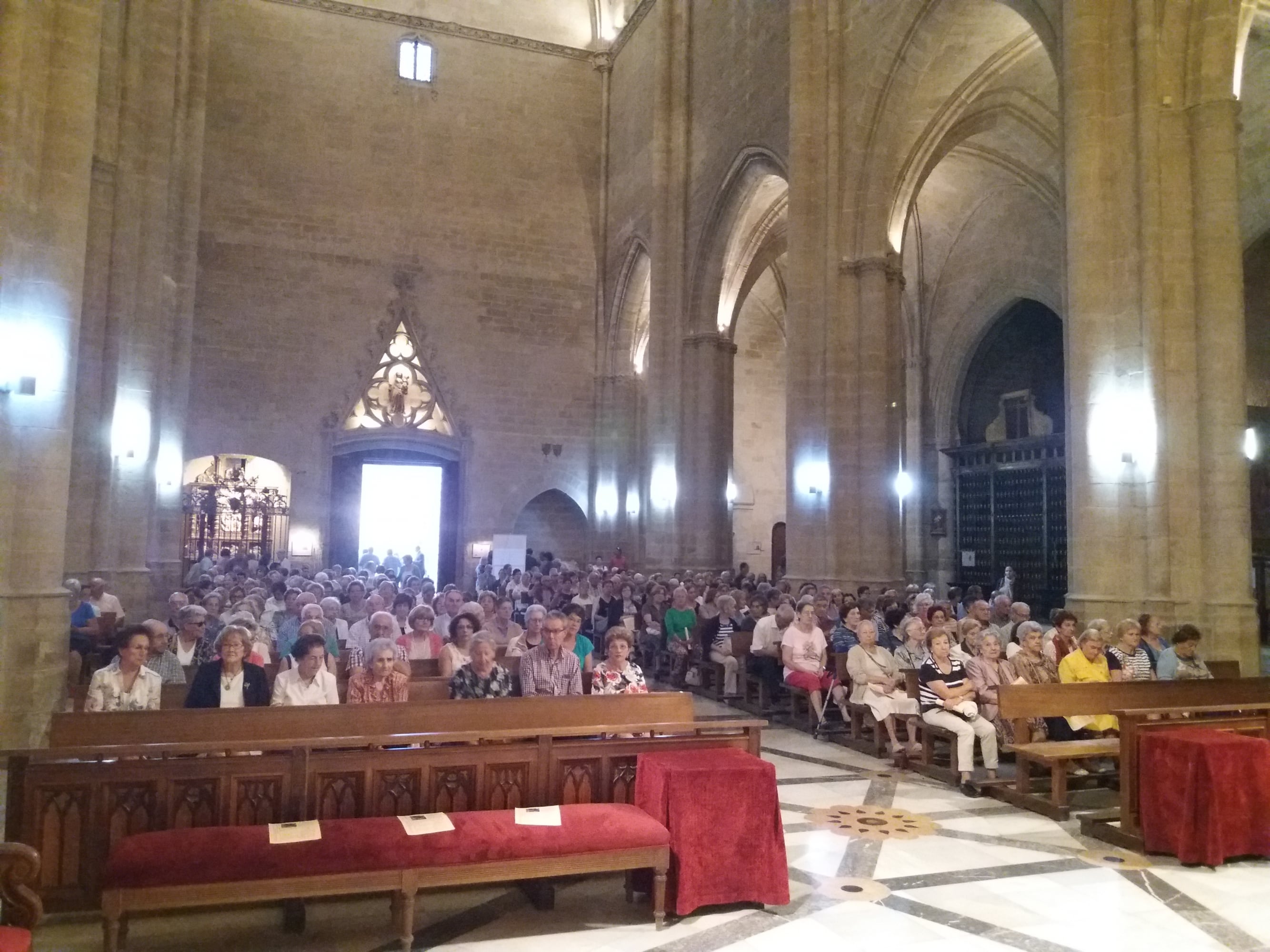 A lo largo de la mañana, las visitas guiadas de turistas que llegaban a Huesca se mezclaban con los fieles que iban acercándose al interior de la seo.