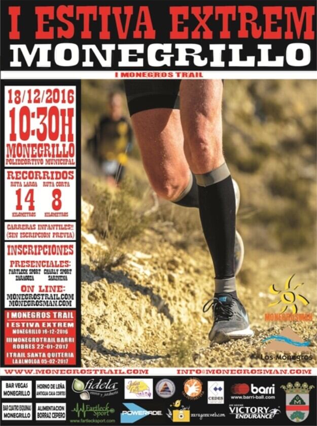 El I Monegros Trail Series arranca este domingo 18 de diciembre en Monegrillo con el I Estiva Extrem y con un total de 500 atletas, que es el límite establecido. La organización corre a cargo de la Comarca de Los Monegros, los ayuntamientos de Monegrillo, Robres y La Almolda y Monegrosman. La prueba dará comienzo a las 10.30 horas en las instalaciones municipales del polideportivo. Se puede optar entre dos circuitos de 14 y de 8 kilómetros.