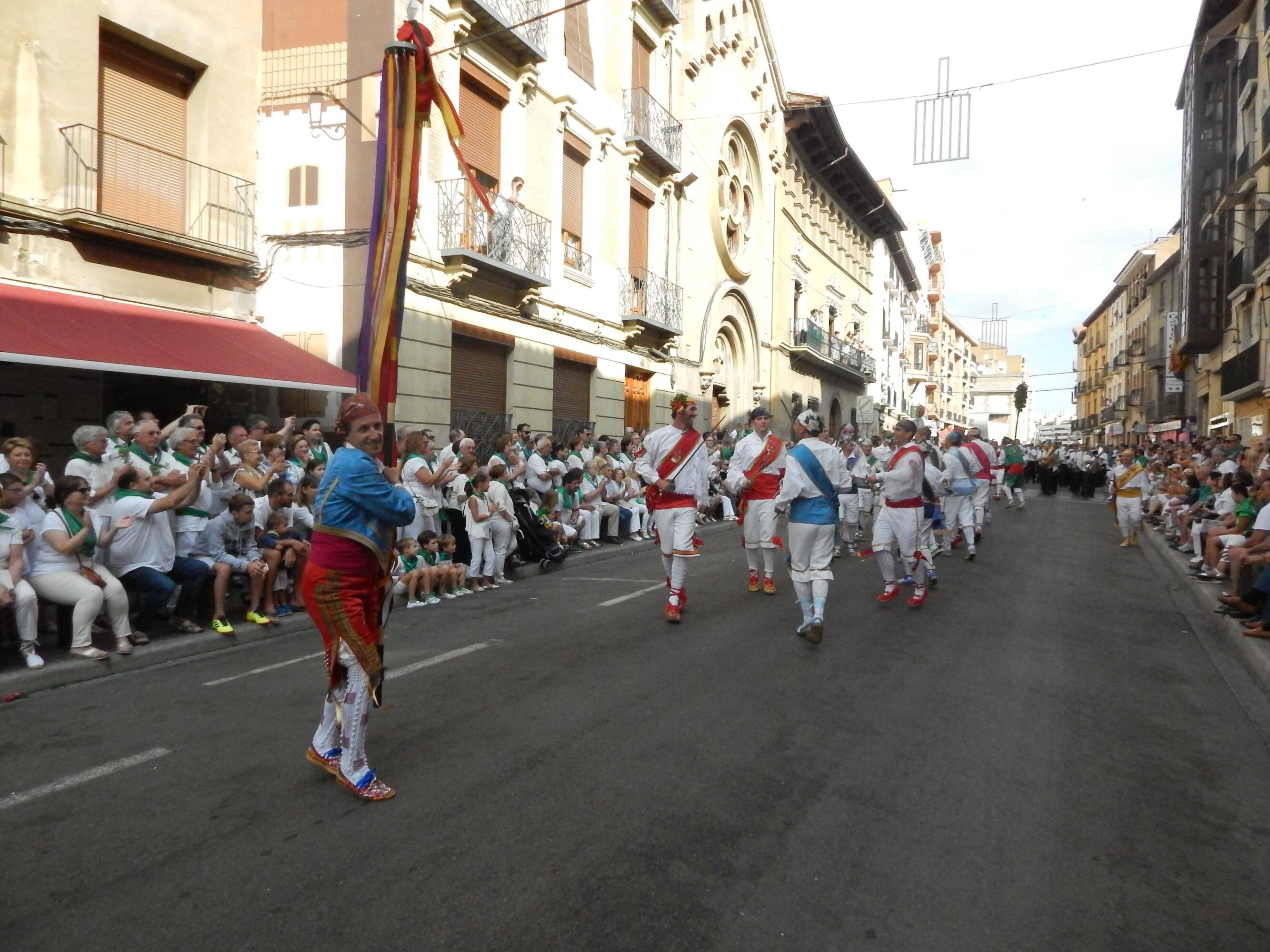 La Banda de Música de Huesca hacía su entrada en la plaza de forma diferente a años anteriores, en los que iban llegando poco a poco sus miembros. En esta ocasión lo hacían en grupo y tocando una pieza.