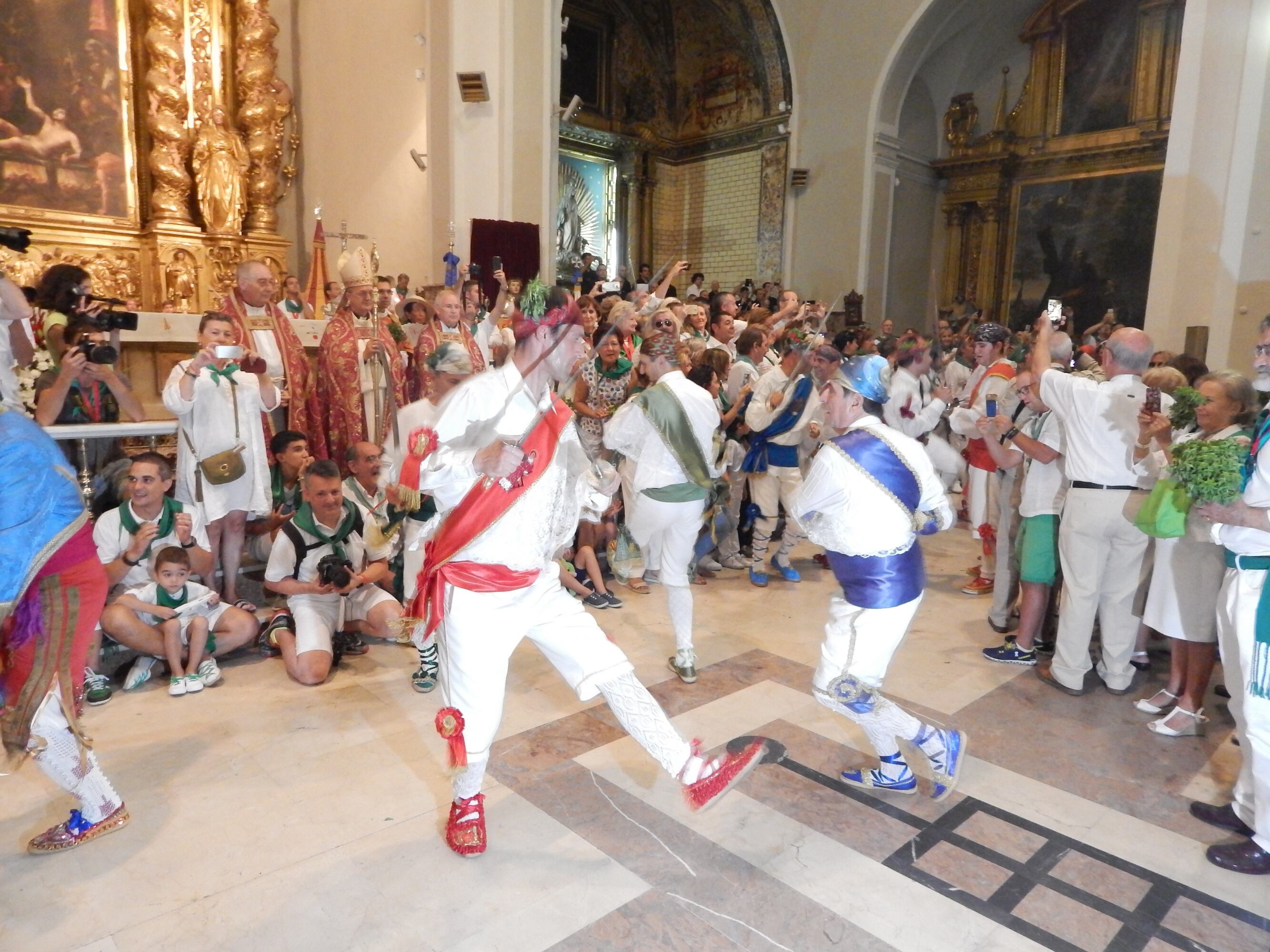 Tras un minuto de silencio en recuerdo a los danzantes fallecidos en el último año, Jesús Ara, Lorenzo Ara, Juan Andreu y Antonio Escartín, la agrupación comenzaba como siempre con las espadas ante la atenta mirada de todas las personas presentes en la plaza frente a la Basílica de San Lorenzo.