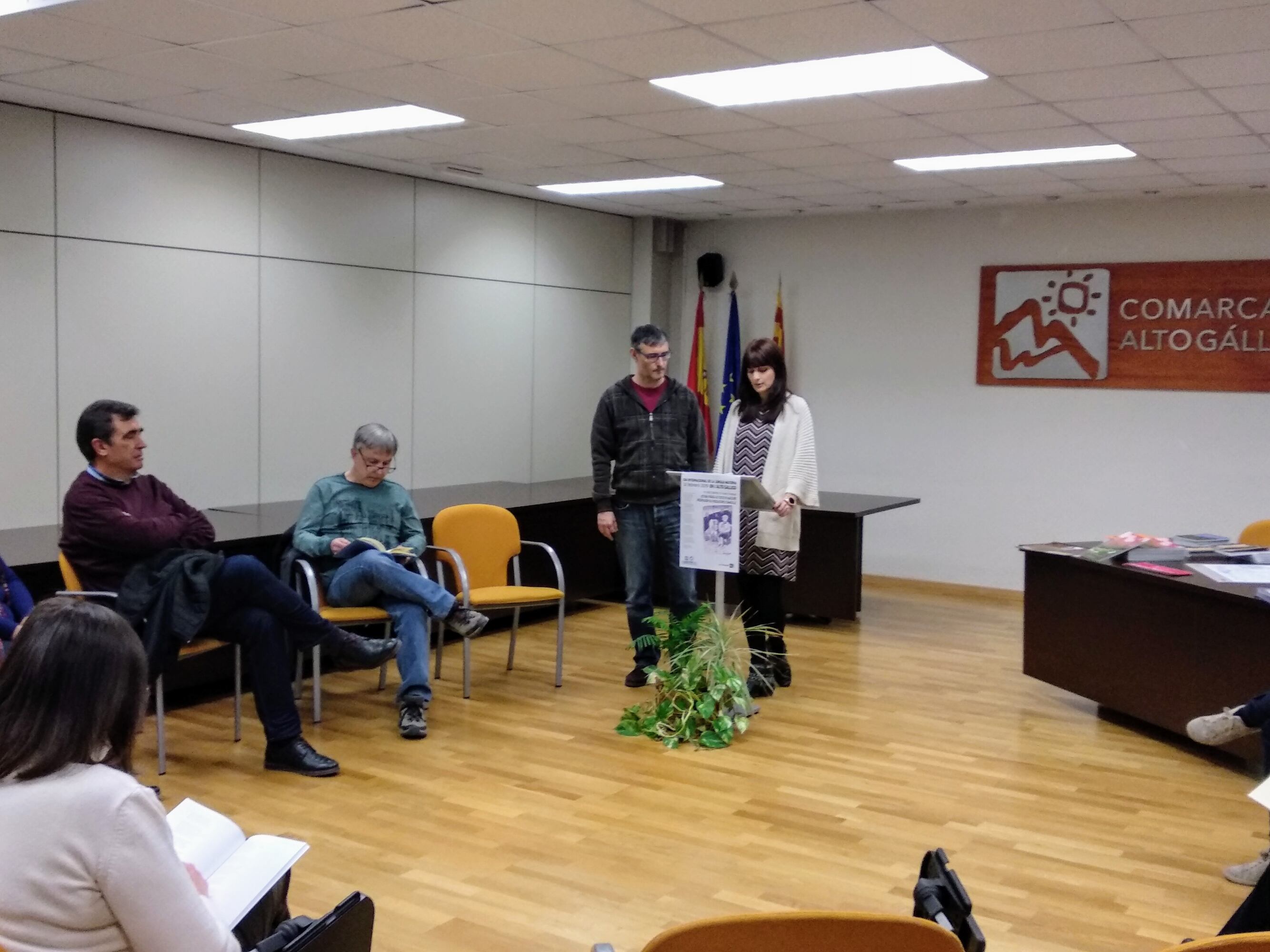 Dentro del marco de la celebración del Día Internacional de la Lengua Materna en el mundo, en Sabiñánigo este 21 de febrero, ha realizado en la sede de la Comarca del Alto Gállego, una actividad por la tarde en la que varias personas han participado con lecturas de textos en aragonés y se presentaban publicaciones y libros comarcales en esta lengua.
