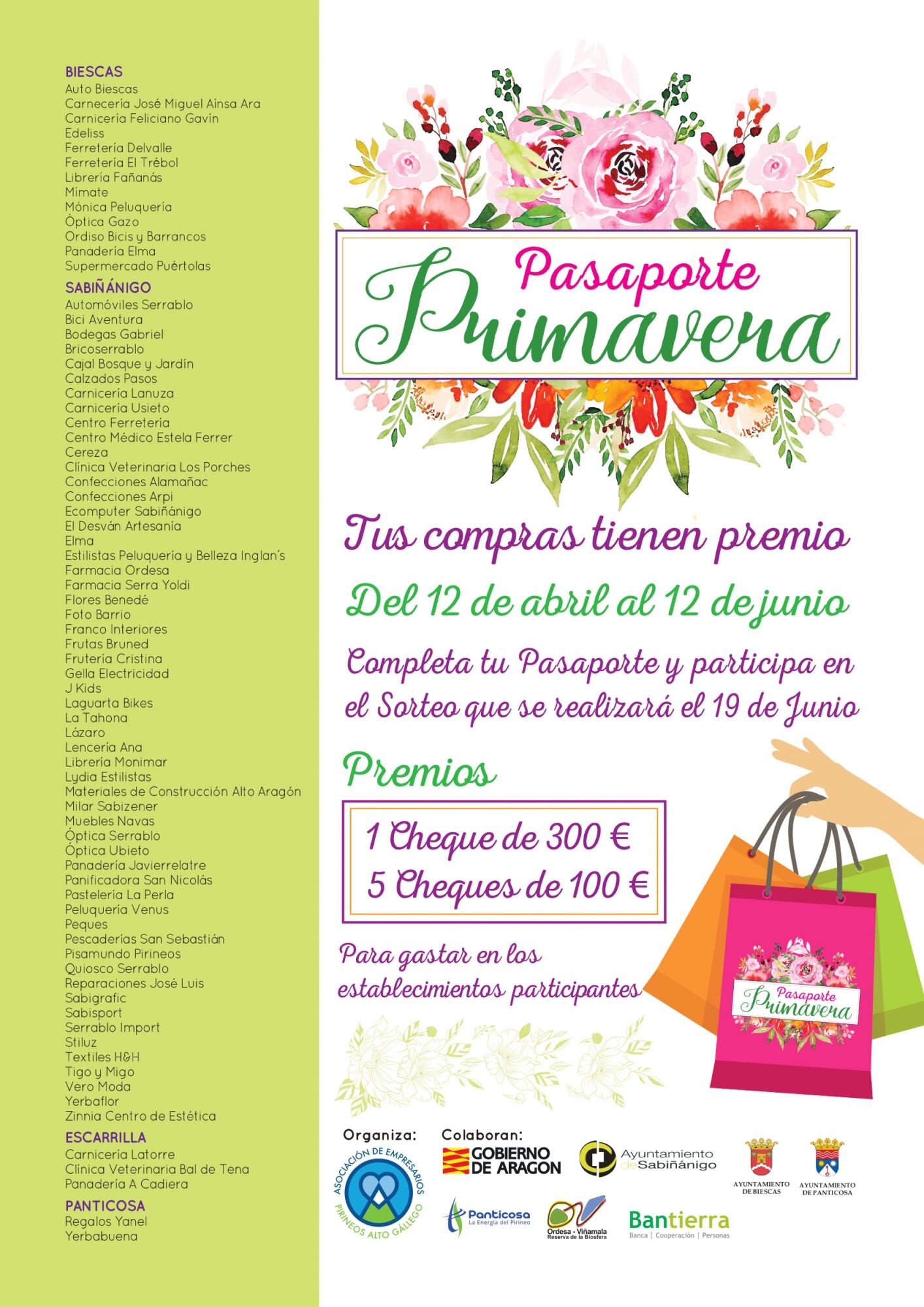Con esta campaña, en la que participan en esta ocasión más de setenta establecimientos de todo el Alto Gállego, se pretende dinamizar el comercio local, intentando fidelizar el consumo y generar al mismo tiempo una rotación de compras en la Comarca. En la campaña colaboran los ayuntamientos de Sabiñánigo y Biescas, además de Energías de Panticosa, Bantierra y el Gobierno de Aragón.