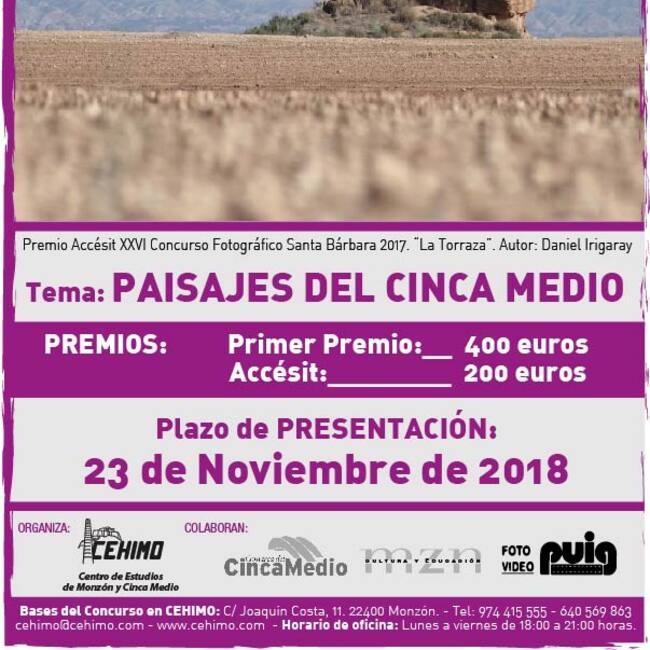 La exposición de fotografías podrá visitarse del 11 al 21 de diciembre, en horario de 19h a 21h, en la citada Sala Cerbuna. El tema de esta edición era "Paisajes del Cinca Medio" y el plazo de presentación de originalizas finalizaba el pasado 23 de noviembre.
