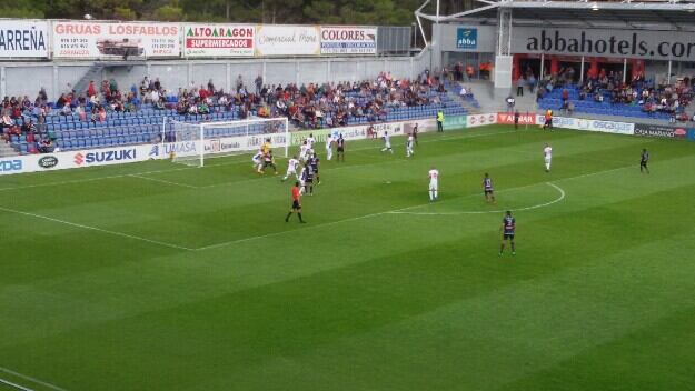 En el 30 Tyronne hacía una jugada de dibujos animados, con dos regates tipo fútbol sala pisando el balón, pero con su pierna “mala”, chutaba fuera. En el 40 primer contratiempo, lesión muscular de Aythami en el abductor, que se tenía que marchar, y entraba Óscar a jugar contra sus ex compañeros. Descanso y buenas sensaciones en los oscenses.