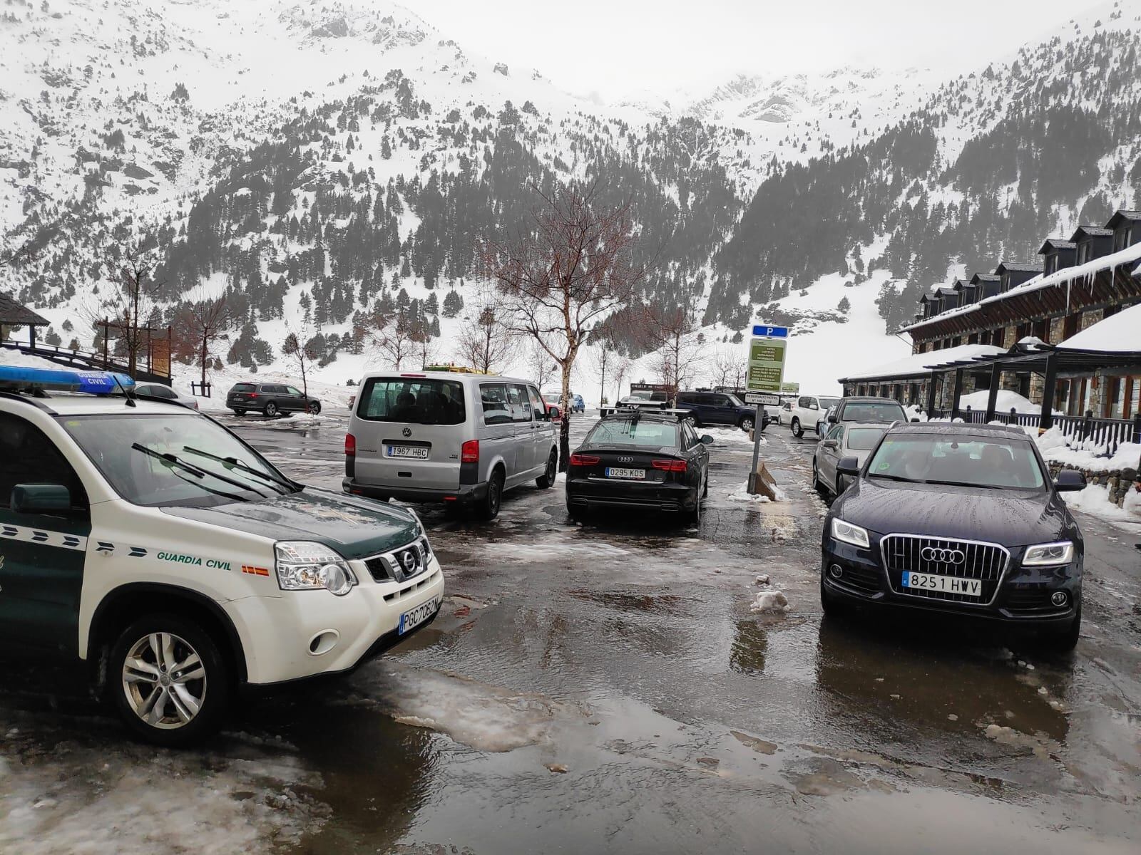 Los clientes salían en sus propios vehículos acompañados por dos máquinas quitanieves del Gobierno de Aragón y un cuatro patrullas de Seguridad Ciudadana del puesto de la Guardia Civil de Benasque y del GREIM de Benasque, tal y como señala el protocolo de actuación en estos casos, y ayuda del personal de Llanos del Hospital.