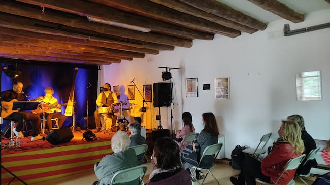 También la actuación dominical de Cosecha 2021 hubo, finalmente, de llevarse puertas adentro. Las lluvias obligaron a trasladar la actuación de Jota Escudero con su concierto Jota & Sil Band de la plaza al interior de centro cultural con una considerable reducción de aforo. No obstante, se completaron todas las plazas disponibles guardando todas las medidas de seguridad sanitaria con un público más joven que fue agradablemente sorprendido por la magnífica interpretación de Jota Escudero (guitarra y silbo) acompañado por dos grandes instrumentistas: Josué Barrés a la percusión y Javier Estella al bajo y contrabajo. Su sonido es nítido y brillante, con versiones de tonadas tan emblemáticas como Don’t worry, be happy, Mediterráneo, Imagine, La belle damme sans regrets o Hey Jude.