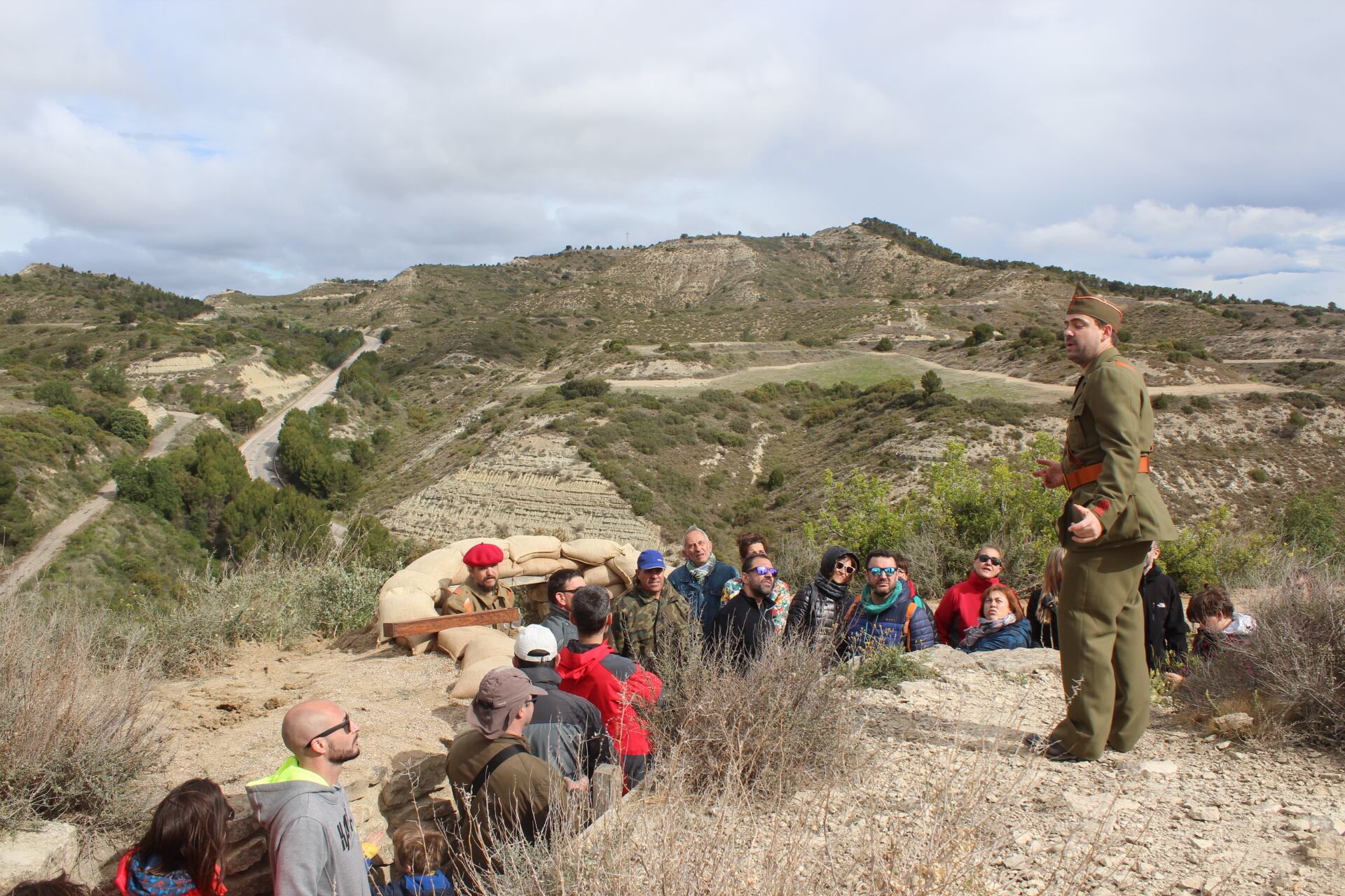 El cierzo que ha soplado con fuerza durante toda la jornada no ha sido impedimento para que más de 300 personas se hayan acercado hoy hasta la Sierra de Alcubierre para participar en la II Trinchera viviente de la Ruta Orwell. Organizada por el Área de Turismo de la Comarca de Los Monegros, con la colaboración del Ayuntamiento de Alcubierre y del Grupo de Recreación “Primera Línea”, esta iniciativa que se repite por segundo año consecutivo, ha conseguido colgar el cartel de completo para los ocho pases que se han sucedido desde las diez de la mañana y hasta las cinco de la tarde del día de hoy.