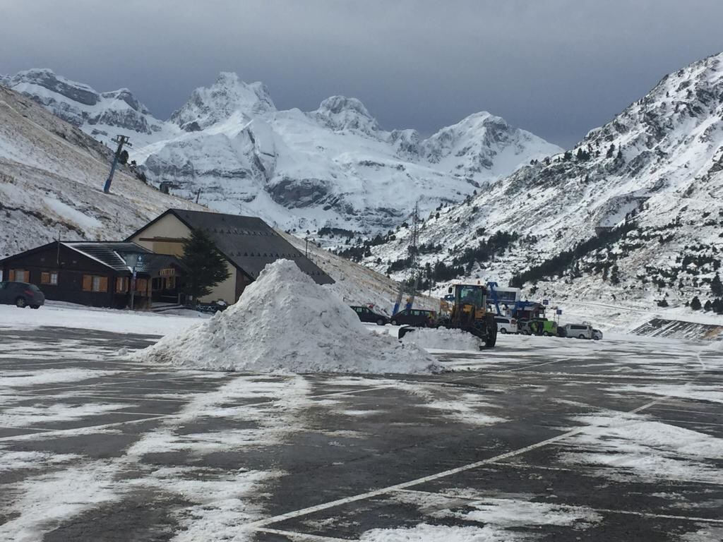 Formigal- Panticosa recogía nieve también este domingo y durante el lunes las bajas temperaturas han permitido fabricar con sus cañones.