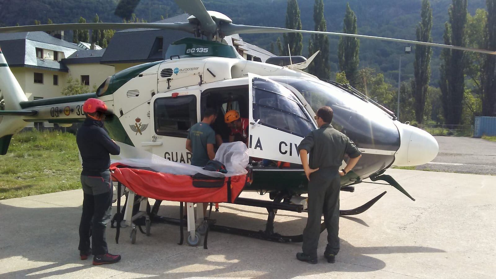 El sábado fue una jornada intensa, con seis intervenciones en total. El GREIM de Benasque llevó a cabo dos intervenciones, la primera en el Ibón de Perramo (Benasque), donde una mujer de 45 años vecina de Segovia sufrió una lesión en el tobillo, teniendo que ser evacuada en helicóptero de la Guardia Civil de Huesca hasta la helisuperficie de Benasque, donde tras ser asistida por el médico del 061, fue trasladada al Hospital de Barbastro con una posible fractura del Calcareo.
