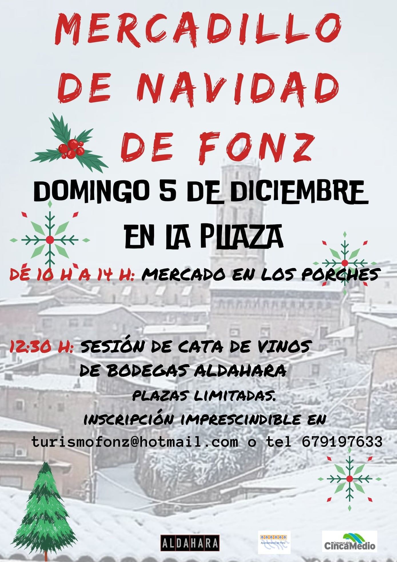 Al objeto de facilitar las compras de estos días, el Ayuntamiento de Fonz ha organizado un mercadillo navideño, el domingo, día 5 de diciembre. Los puestos se desplegarán en la Plaza Mayor desde las 10:00h a 14:00h.