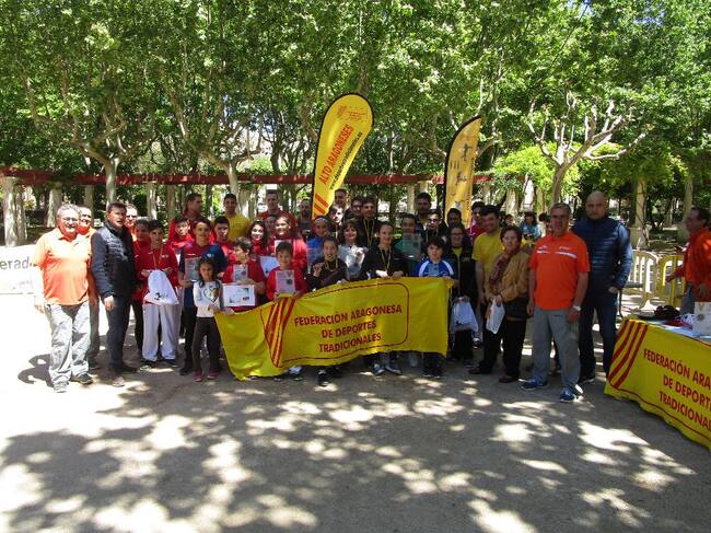 Terminada la competición escolar dio comienzo el XXX Trofeo San Jorge de Tiro de barra aragonesa