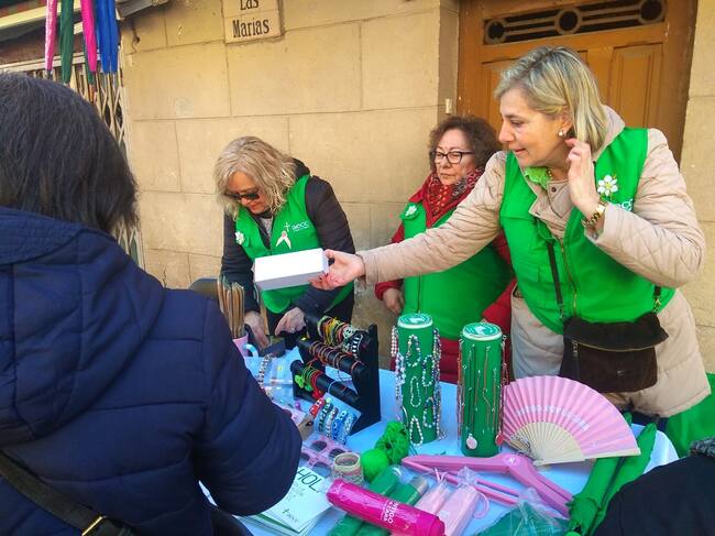 El programa este martes fue doble, puesto que, por la mañana de 10 a 14 horas, miembros de la junta local, salieron a la calle con una mesa, que instalaron en la calle Salamero, y que tuvo una buena respuesta por parte de los vecinos que se acercaron para hacer sus donativos, adquirir algunos de los artículos que se encontraban a la venta cono bisutería, paraguas, perchas, abanicos o botellas o, simplemente, informarse acerca de la actividad que desarrolla la AECC.