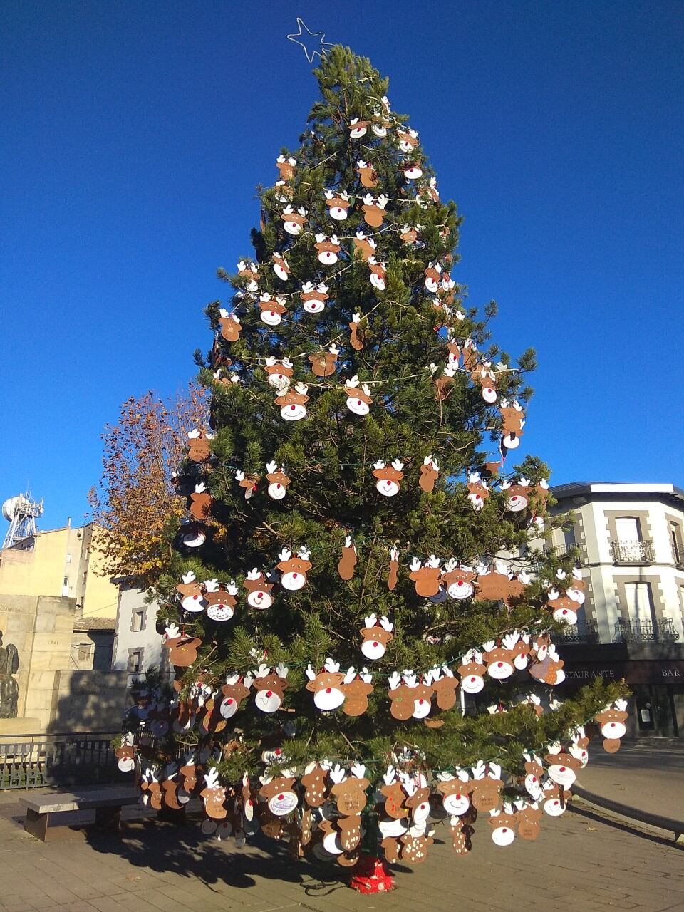 Las guirnaldas, los adornos y las luces navideñas decoran ya varias calles de Graus y también la plaza Mayor donde hace ya algunas semanas que la brigada municipal acometió la tarea de su colocación. También el árbol junto al monumento a Costa cuya decoración, llevaban a cabo, este martes, los niños de la escuela infantil y del colegio Joaquín Costa que colocaban los adornos navideños. Este año, se han colgado de las ramas del árbol alrededor de 500 cartulinas con la cara de uno de los renos de Papa Noel, concretamente, Rudolph, porque tiene la nariz roja.