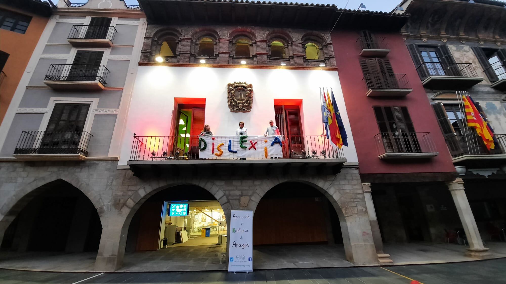 Este viernes 8 de octubre se celebra el Día Internacional de la Dislexia y Graus, un año más, se suma a la conmemoración. El balcón del Ayuntamiento luce un cartel en el que se puede leer la palabra ‘dislexia’ y el miércoles, a última hora de la tarde, la fachada se iluminó de rojo. Con estas acciones se intenta concienciar a grausinos y ribagorzanos acerca de la dislexia, un trastorno que afecta a la lectura y escritura y que, normalmente, se hereda.