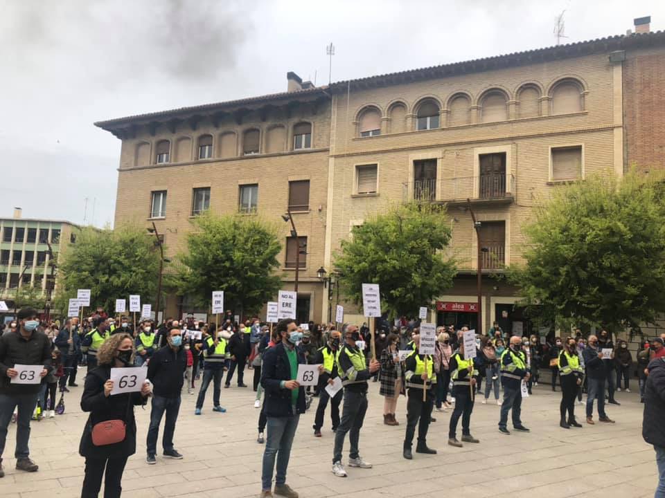 Guardando todas las medidas sanitarias y de distanciamiento, se celebraba en la plaza Mayor de Monzón una concentración contra el ERE que plantea Ferroglobe para Ferroatlántica del Cinca, y que supone el despido de 63 trabajadores.