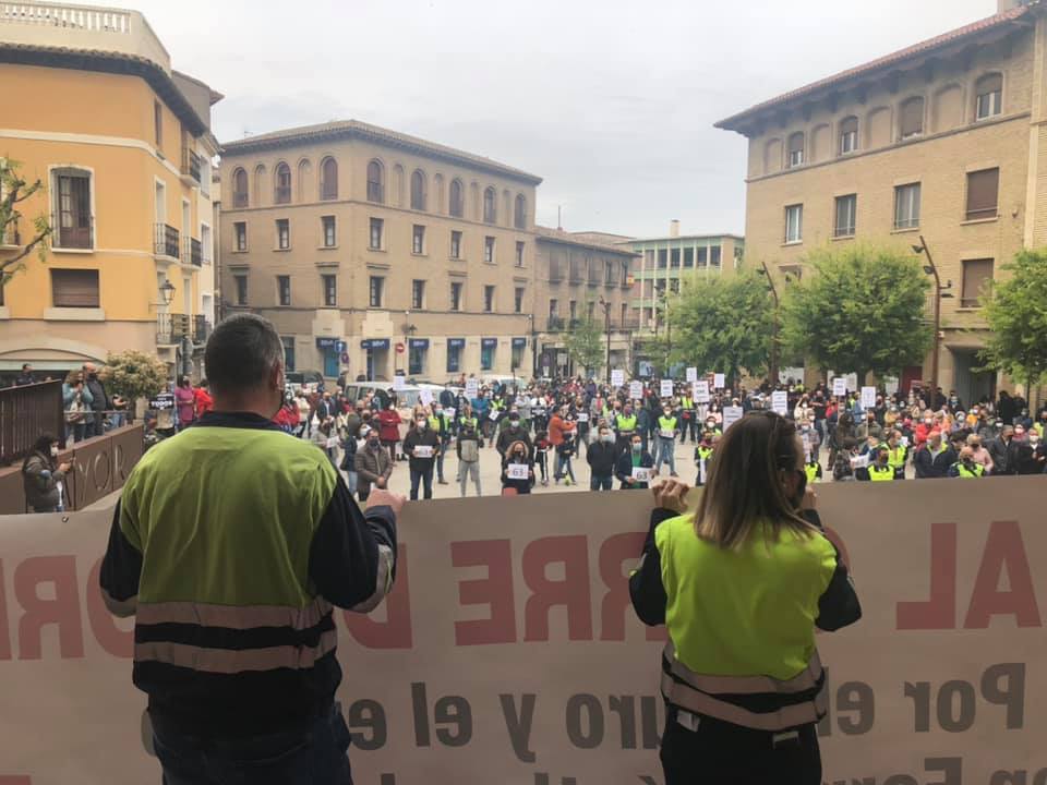 Autoridades y representantes de todas las formaciones políticas, representantes del tejido empresarial y numerosos vecinos se sumaban a la concentración para mostrar su apoyo a los trabajadores. Una unión que en declaraciones a los medios destacaba el alcalde de Monzón, Isaac Claver, ya que, según decía, afecta negativamente a toda la ciudad.