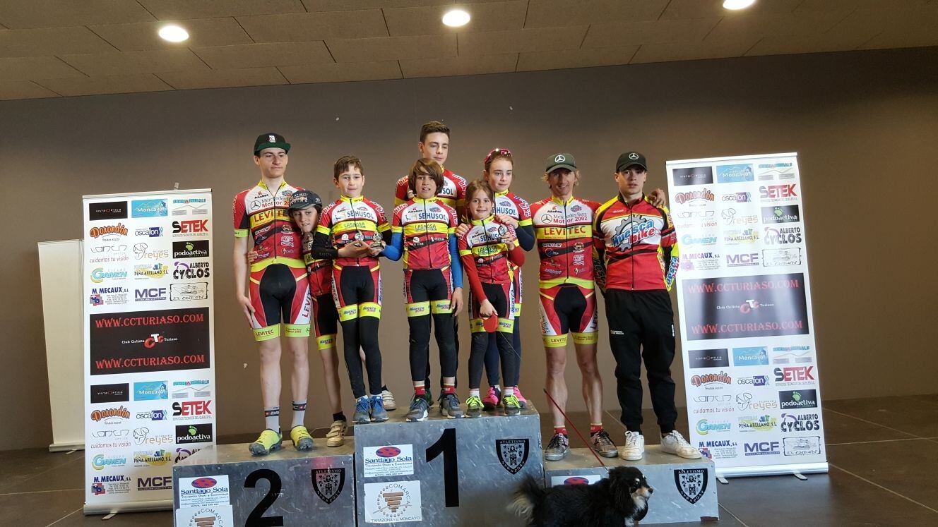 Por parte de las escuelas de ciclismo patrocinadas por Sehusol, Lasaosa y Espacio Salud Liarte participaron 6 niños; de los más de 30 que componen las Escuelas de Huesca Bike, cuyos asistentes hicieron una buena participación copando los primeros lugares de las clasificaciones y pasando una buena mañana disfrutando del deporte y haciendo nuevos amigos de otros clubs obteniendo cinco pódium, en esta primera prueba puntuable compuesta de dos partes, una gymkana y una carrera en línea.