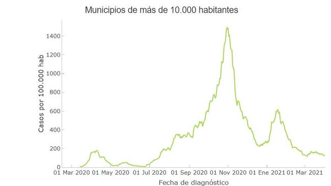 A nivel provincial, durante el pasado mes de marzo, el mayor pico de la incidencia acumulada en dos semanas se produjo el día 6 con 176,9, mientras que marzo se cerró con 115,4 contagios por cada 100.000 habitantes. Abril comenzó con una incidencia de 106.