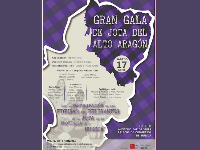 Coordinada por Roberto Ciria y con la dirección musical de Fernando Casaus, esta fiesta del folclore, que presentaron Pablo Gracia y María Grúas, contó con la participación los cantadores Javier Badules, Óscar Badías, Toño Julve y Roberto Ciria; las cantadoras Inés Martínez, Elena Casaña, Mercedes Budiós, Irene Alcoceba, Sofía Bueno y Lorena Laglera, y las parejas de baile formadas por Alejandro Alonso y Mapi Aquilué, Pablo Pérez y María Pérez, y David Claver y Lucía López. Fueron acompañados por los músicos de la Compañía Artística Osca: Rodrigo Elpuente, Leticia Marsó, Jorge Marsó, José Manuel Andrés, Rafael Casanova y Fernando Casaus.