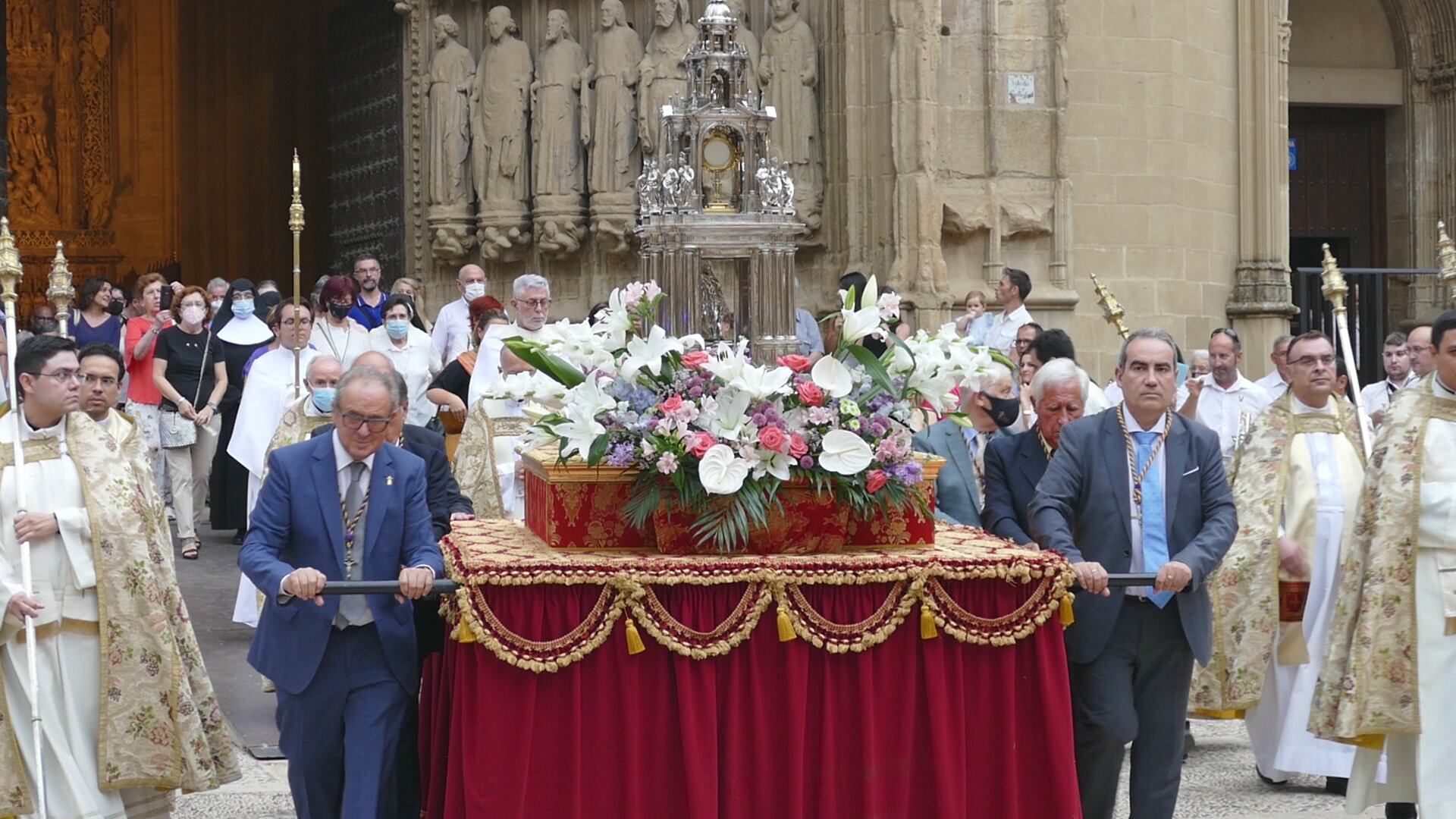 Después de dos años sin poder celebrarse debido a la pandemia de la covid-19, la ciudad de Huesca celebraba la festividad del Corpus Christi. En la Catedral tenía lugar la celebración de la pontifical para posteriormente realizar la procesión.