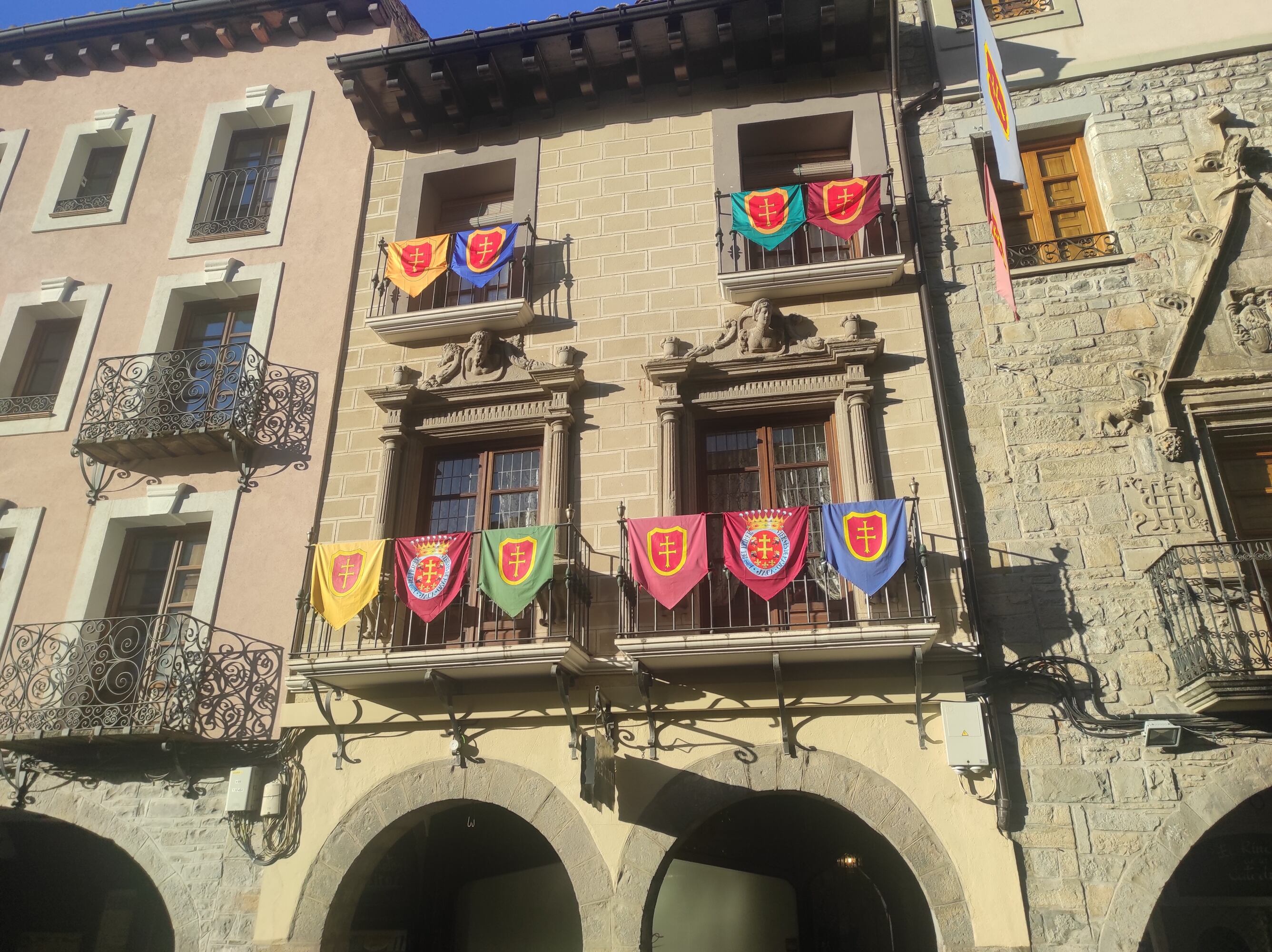 Jaca, más engalanada que nunca con 700 nuevos cubre balcones del Primer Viernes de Mayo