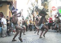 La fiesta del folklore comenzaba en la Escuela Militar de Montaña, desde donde partían todos los grupos, cantando y danzando por dicha avenida, para llegar hasta la plaza Biscós, donde ofrecieron un espectáculo multicultural e internacional que hizo vibrar al público que se congregaba en este escenario, recuperado tras diez años para vivir uno de los momentos más especiales del festival.