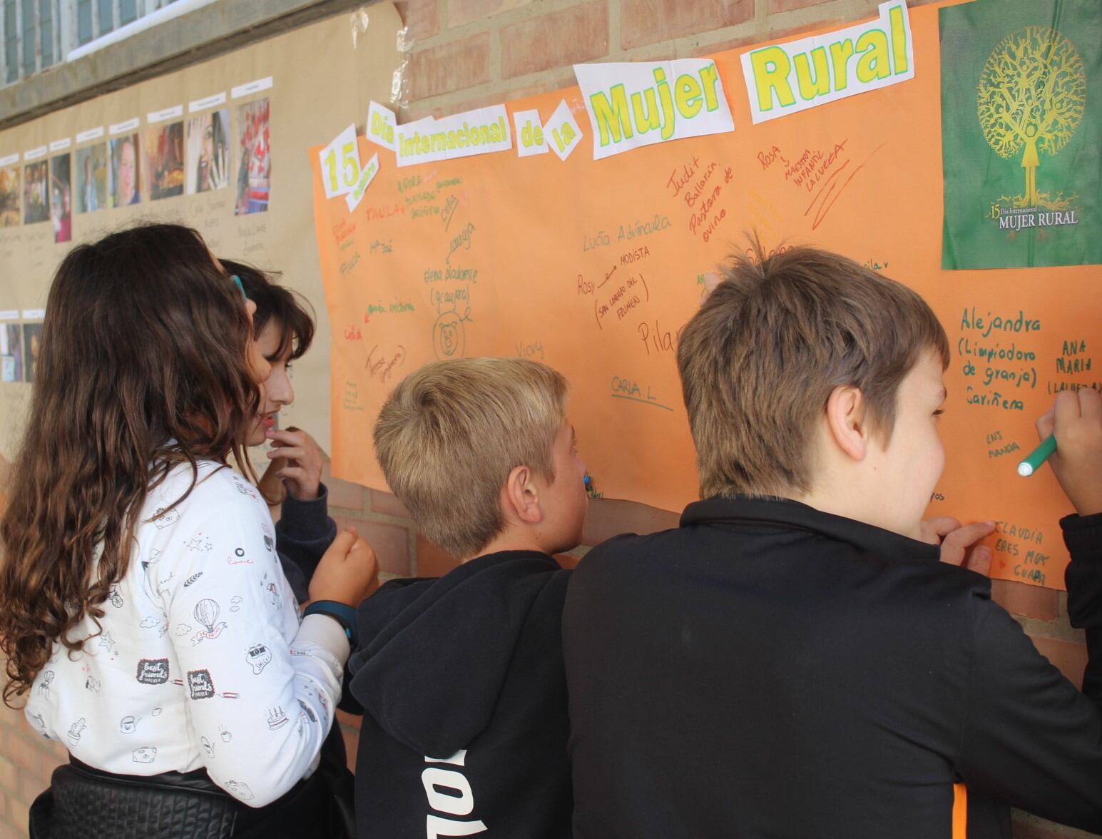 Alejandra, limpiadora de granja; Mapi, artista; Sonia panadera; Sofía, administradora de empresas; Rosy, modista; Cristina, pastora de ovino; Miriam cuidadora de personas mayores; María, ciclista; Goretti, agricultora; Araceli ama de casa; Olga, funcionaria; Arantxa, médica; María José, profesora de música; Begoña, empresaria, … son algunos de las decenas de nombres de mujeres monegrinas y las profesiones a las que se dedican, que alumnado del I.E.S. Monegros Gaspar Lax de Sariñena ha ido escribiendo esta mañana en un mural dedicado al Día Internacional de la Mujer que se celebró este miércoles.