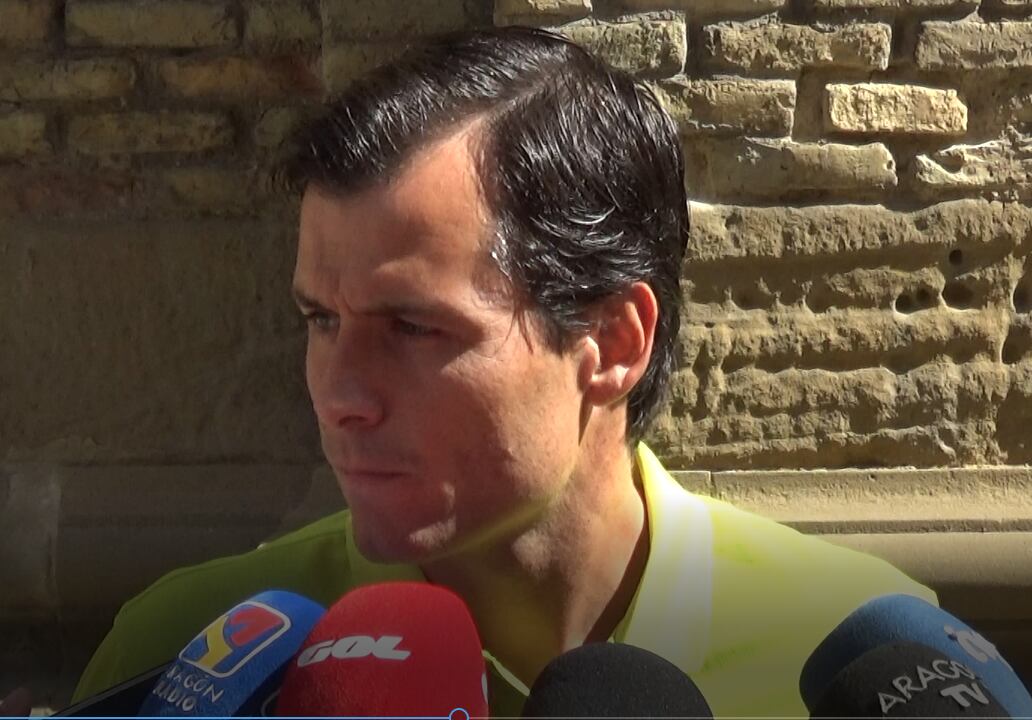 Después de la tradicional ofrenda de flores a San Lorenzo, el capitán de la Sociedad Deportiva Huesca Juanjo Camacho ofrecía unas palabras a los medios de comunicación. El experimentado futbolista explicaba la importancia de "estar todos juntos" en un momento tan complicado para el equipo azulgrana.