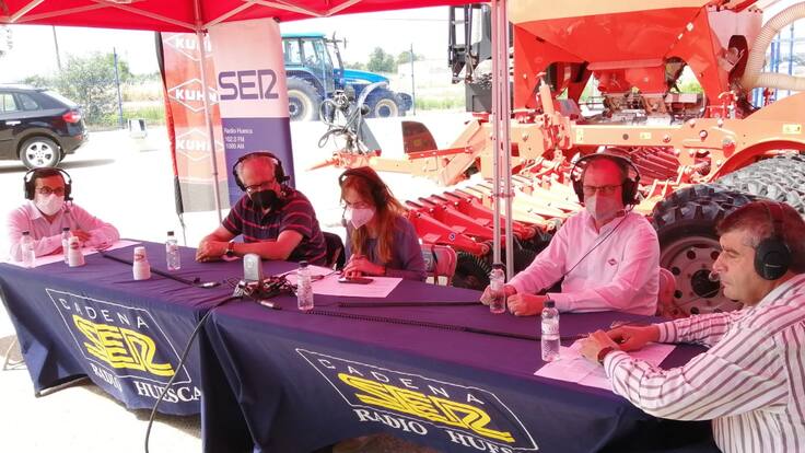 El programa Hoy por Hoy de la Cadena SER Aragón se ha emitido desde la sede de KUHN Ibérica en Huesca. Con el director general José Lafuente, Fernando Cuervo director comercial de la empresa y junto al especialista agrónomo Ignacio Almudévar y Alfonso Tajada presidente de la Asociación de Maquinaria Agrícola. Juanjo Hernández daba paso a Nuria Garcés que charlaba con ellos y ponían en valor el potencial de la maquinaria en la nueva agricultura que aporta "la fuerza del conocimiento", tras conocer en qué punto se encuentra la cosecha en el resto de la comunidad aragonesa